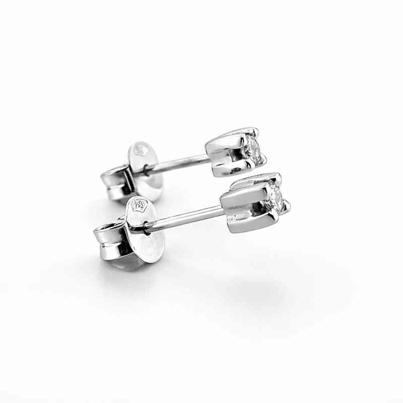 Всяка обеца е украсена с естествен диамант с кръгла брилянтна шлифовка, с тегло 0.05 карата, а общото каратно тегло на диамантите е 0.10 карата. Малки, деликатни и изключително елегантни, те улавят светлината по фин начин и придават нежен блясък.